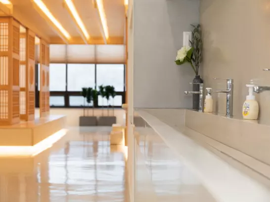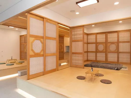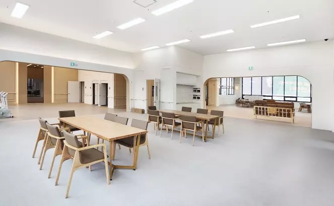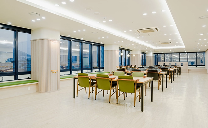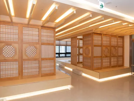 활기의 신도시 광명 역세권에 위치한 대교 뉴이프 ‘광명센터’는 현대적으로 해석한 전통의 아름다움을 바탕으로 이용자 어르신들을 최우선적으로 고려하였습니다. 전용 약 500㎡(150평형)의 넓은 공간을 바탕으로 주생활공간을 구성하고 프로그램, 휴식, 위생관리 등 필요한 서비스를 독립적인 공간에서 이용할 수 있도록 배려한 점이 돋보입니다.