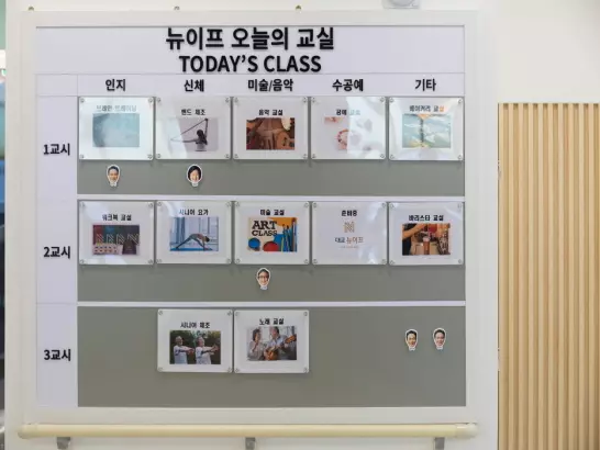 | 13:30~14:30 | * 대교 뉴이프 선택형 프로그램 <두뇌운동, 미술활동, 음악교실, 제과/제빵, 수공예, 원예활동, 야외활동 등 중 택1> |