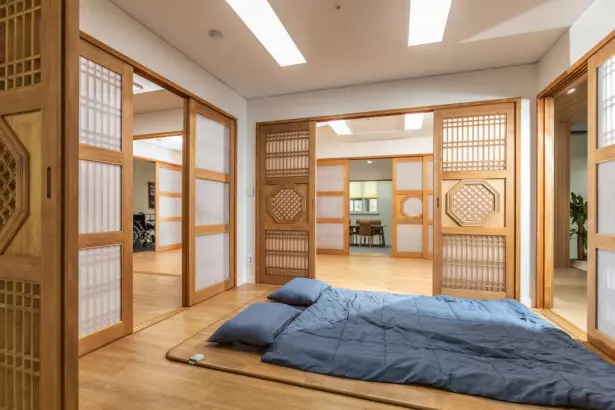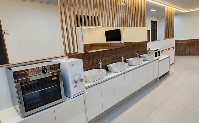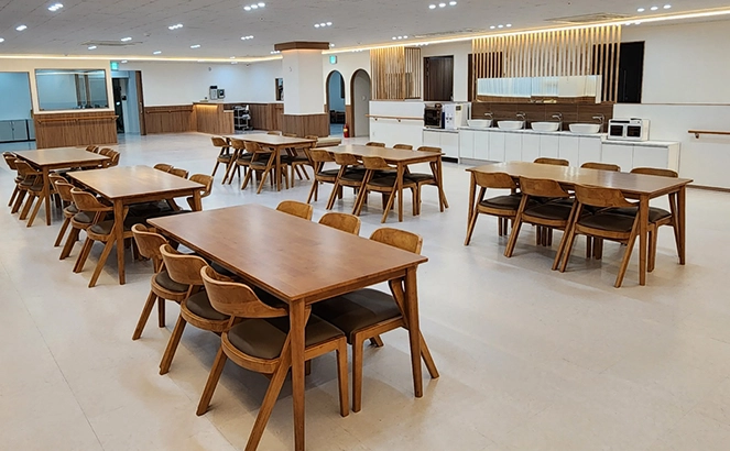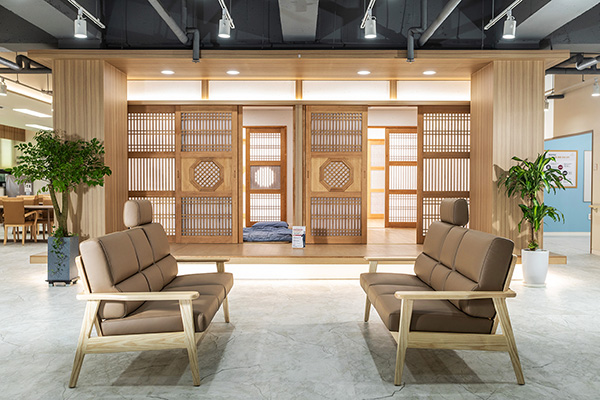 대교뉴이프 '광주북구 통합센터'는 현대적으로 해석한 전통의 아름다움을 바탕으로 이용자 어르신들을 최우선적으로 고려하였습니다. 전용 약 125평형의 넓은 공간을 바탕으로 주생활공간을 구성하고 선택형 프로그램, 사생활이 존중되는 휴식,건강관리 등 필요한 서비스를 독립적인 공간에서 이용할 수 있도록 배려한 점이 돋보입니다.