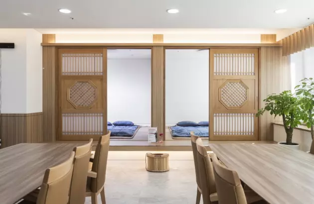 대교 뉴이프 ‘해운대센터’는 현대적으로 해석한 전통의 아름다움을 바탕으로 이용자 어르신들을 최우선적으로 고려하였습니다. 전용 약 148평형의 넓은 공간을 바탕으로 주생활공간을 구성하고 선택형 프로그램 , 사생활이 존중되는 휴식, 건강관리 등 필요한 서비스를 독립적인 공간에서 이용할 수 있도록 배려한 점이 돋보입니다.
