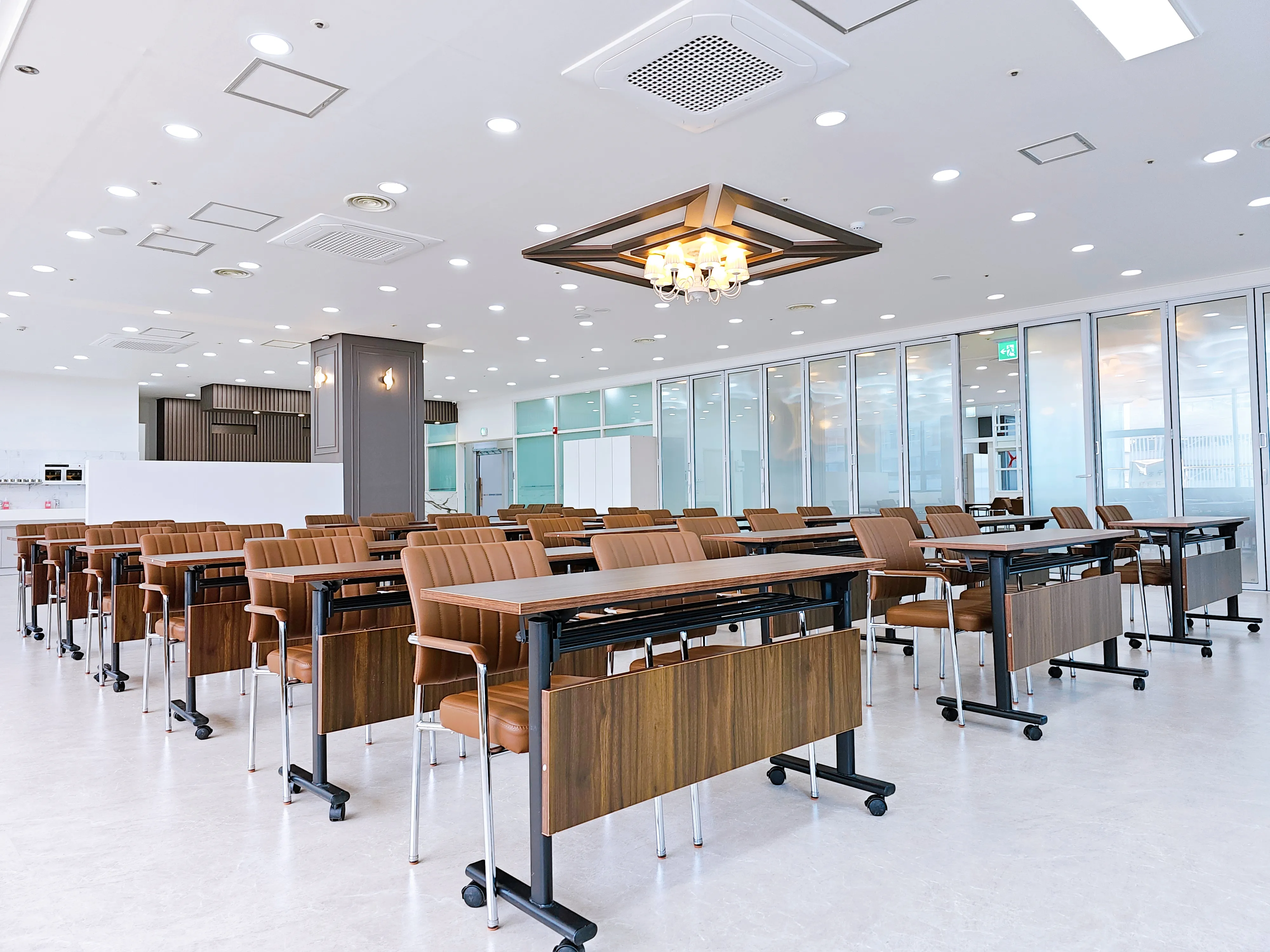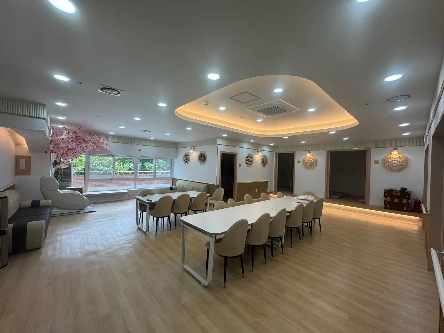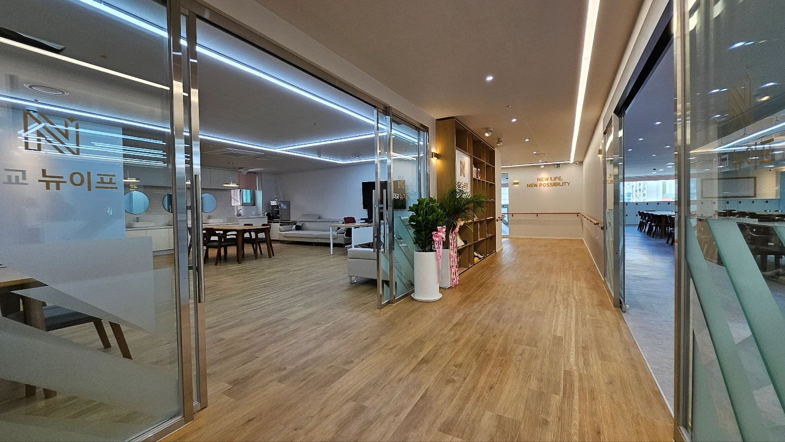대교뉴이프 '인천청라 통합센터'는 현대적으로 해석한 전통의 아름다움을 바탕으로 이용자 어르신들을 최우선적으로 고려하였습니다. 전용 약 180평형의 넓은 공간을 바탕으로 주생활공간을 구성하고 선택형 프로그램, 사생활이 존중되는 휴식,건강관리 등 필요한 서비스를 독립적인 공간에서 이용할 수 있도록 배려한 점이 돋보입니다.