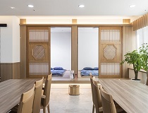 대교뉴이프 '김해센터'는 현대적으로 해석한 전통의 아름다움을 바탕으로 이용자 어르신들을 최우선적으로 고려하였습니다. 전용 약 160평형의 넓은 공간을 바탕으로 주생활공간을 구성하고 선택형 프로그램, 사생활이 존중되는 휴식,건강관리 등 필요한 서비스를 독립적인 공간에서 이용할 수 있도록 배려한 점이 돋보입니다.