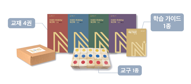 A, B, C 전 과정의 매 교재에서 좌뇌와 우뇌를 골고루 자극하는 다양한 문제 (언어, 수학, 집중력, 정서 활동, 시지각능력, 판단력, 기억력)들이 담겨 있습니다.